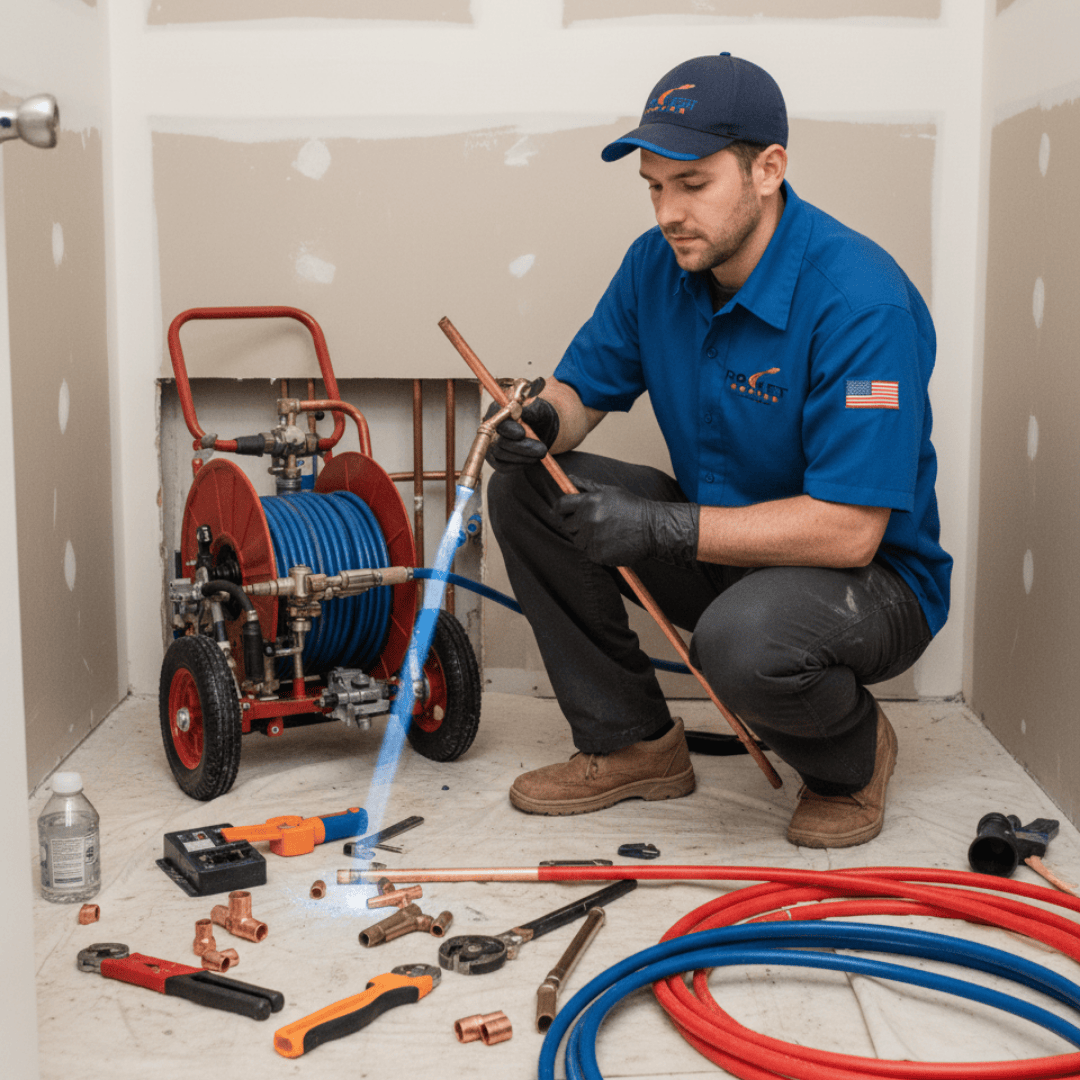 "At Rocket Rooter LLC, we specialize in drain cleaning, hydro jetting, and emergency plumbing services. Our team is dedicated to providing efficient, high-quality work to ensure your plumbing system is running smoothly, 24/7."